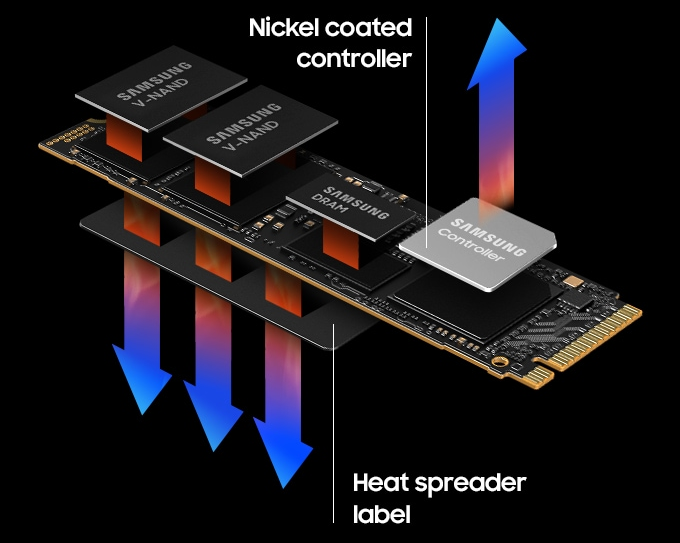 هنگامی که سرعت فراتر از گرما حرکت کرده و اجازهی خودنمایی به آن را نمیدهد. کنترلر با روکش نیکل و الگوریتم کنترل حرارتی پیشرفته، مدیریت گرما را برای ارائهی عملکرد بینقص به بهترین شکل انجام میدهد. برچسب گرمایی، از گرم شدن بیش از اندازهی تراشهی NAND جلوگیری کرده و محافظ حرارتی پویا دما را در حالت بهینه نگه میدارد.